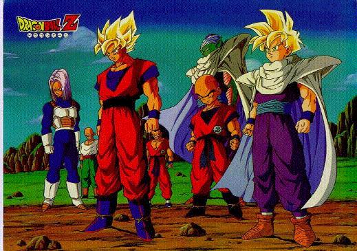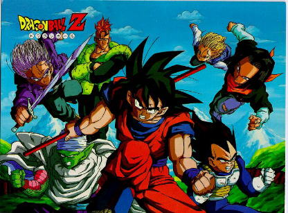 | Dragonball 54 | 30 kb | Cool pic of the Dragonball-Z cast posing for fights in a field |